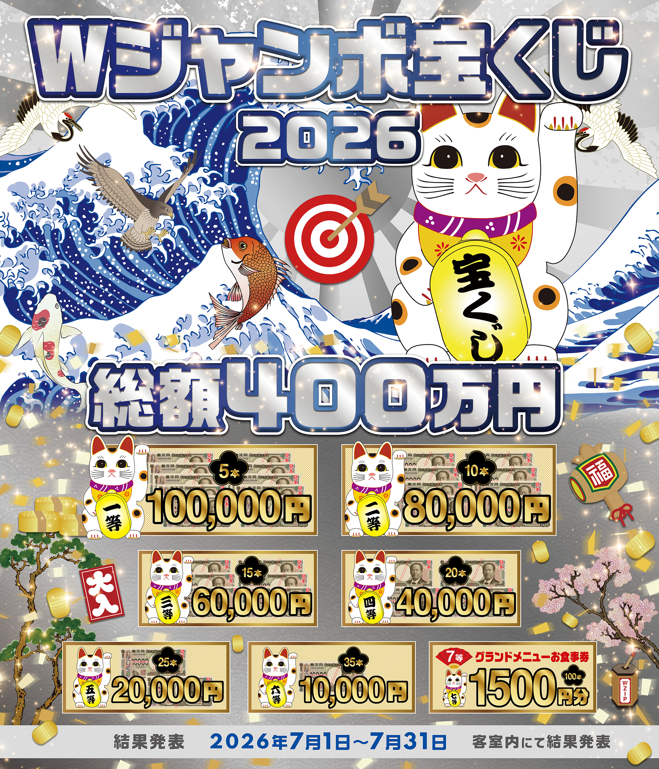 極上の贅沢な旅が当たるイベントを8/1より開始しました! お部屋に設置されているチケットをお持ちください!